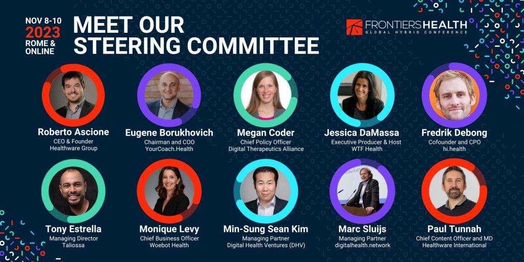 Roberto Ascione, CEO and Founder of Healthware Group, will lead the Steering Committee for the eighth consecutive year as Conference Chair. We will also meet other leading figures in Digital Health such as Eugene Borukhovich, CEO and COO of YourCoach.Health; Megan Coder, Chief Policy Officer of the Digital Therapeutics Alliance; Jessica DaMassa, Executive Producer & Host for WTF Health; Fredrik Debong, Co-Founder and CPO of hi.health; Tony Estrella, Managing Director of Taliossa; Monique Levy, Chief Business Officer of Woebot Health; Min-Sung Sean Kim, Managing Partner of Digital Health Ventures (DHV); Marc Sluijs, Managing Partner of digitalhealth.network; and Paul Tunnah, Chief Content Officer and Managing Director of Healthware International.