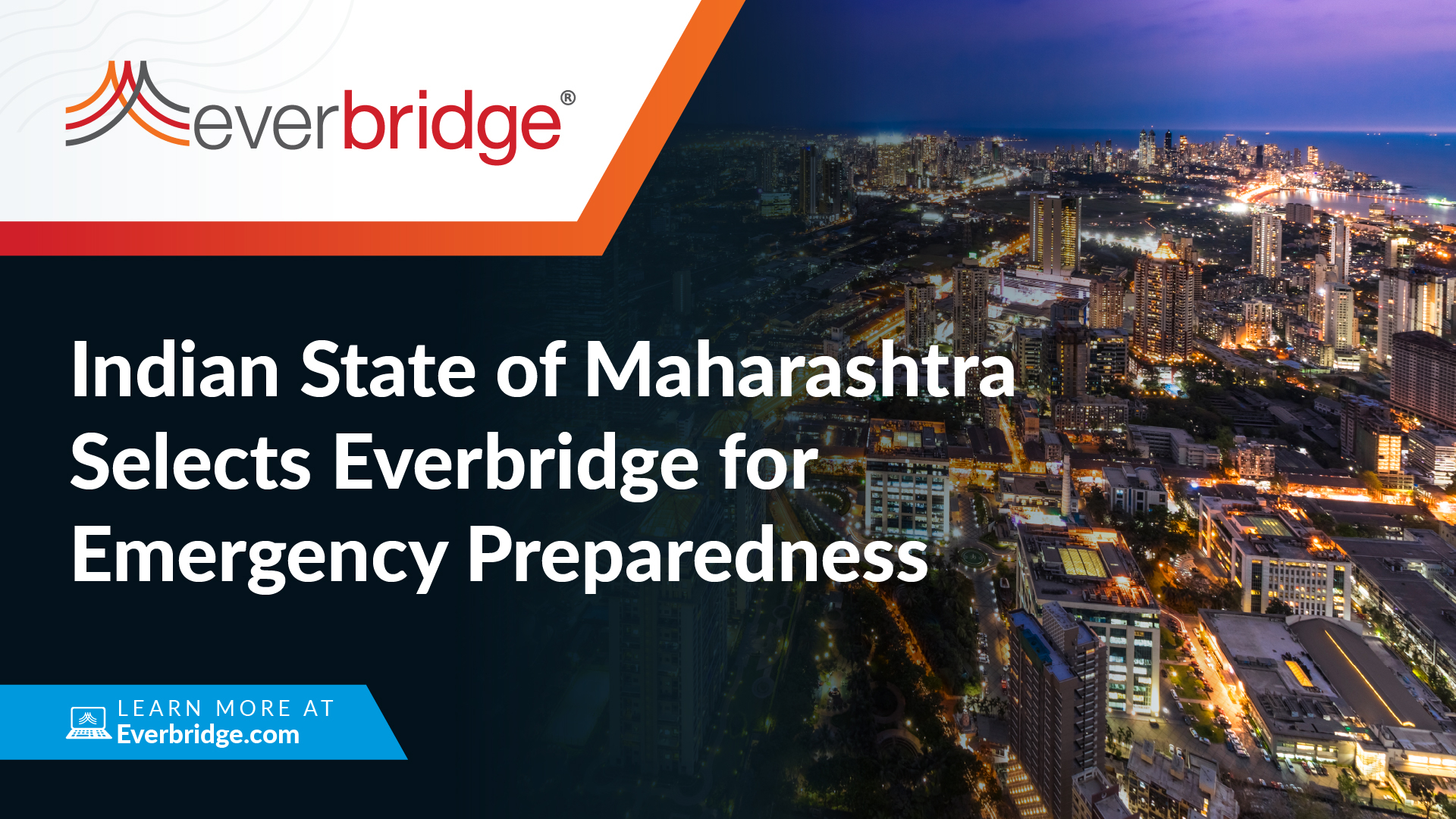 BURLINGTON, Mass.–(BUSINESS WIRE)–Everbridge, Inc. (NASDAQ: EVBG), the global leader in critical event management (CEM) and national public safety software solutions, today announced that the Indian State of Maharashtra selected the company’s Incident Response Solutions to help governments plan for, respond to, and recover from any disaster. Home to a combined 150 million residents and annual tourists, Maharashtra is the second-most populous state in India, and its capital Mumbai is the most populous city in the country.